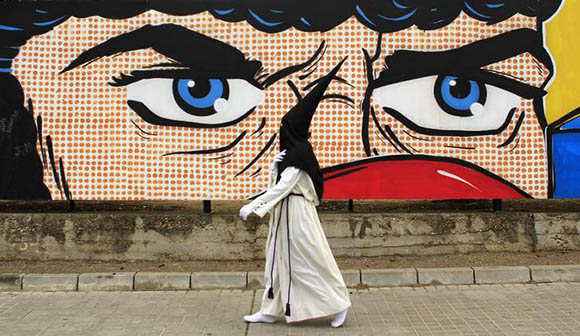 A penitent walks to a church before taking part in the procession of «Jesus Cautivo y Rescatado» brotherhood during Holy Week in the Andalusian capital of Seville, southern Spain. Reuters Archive.