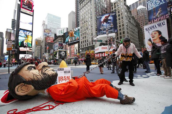 Actors, dressed as Iran’s President Mahmoud Ahmadinejad, from the group called ‘Iran 180’ demonstrate in New York’s Times Square, USA. Reuters Archive.