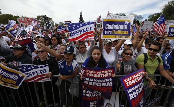 Hundreds of protesters calling for comprehensive immigration reform gather at a rally on the Washington Mall, USA. October 8, 2013.