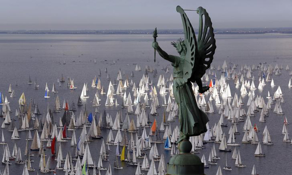 Sailing boats gather at the start of the Barcolana regatta in front of Trieste harbour, Italy. October 13, 2013.