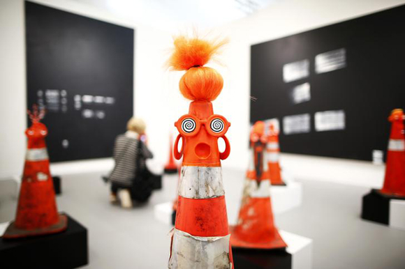 A visitor photographs part of Robert Pruitt’s «Safety Cones» at the Gavin Brown’s Enterprise from New York’s stand at the Frieze Art Fair in central London, England. October 16, 2013.