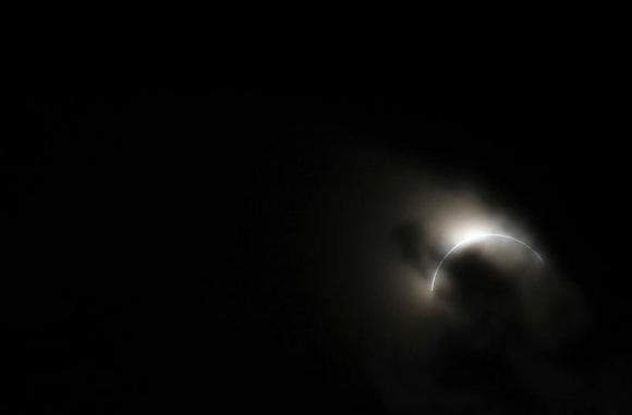 The moon blocks the sun seconds before a total solar eclipse at the remote Sibiloi National Park on the shore of Lake Turkana, Kenya. November 3, 2013.