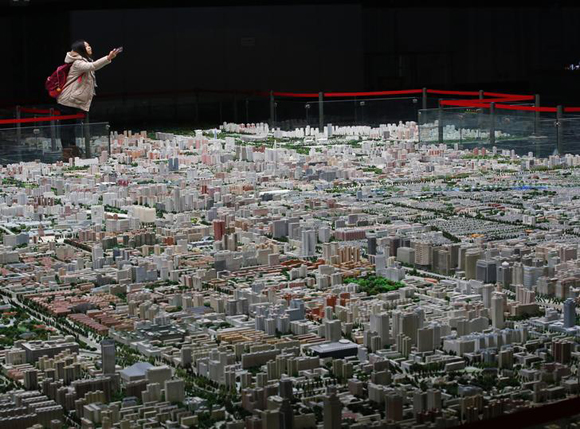 A visitor takes pictures of a model of Beijing’s downtowns at the Beijing Planning Exhibition Hall, a museum showcasing the achievement of Beijing urban planning construction, in Beijing, China. November 5, 2013.