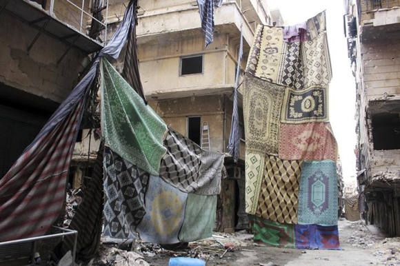 A general view shows curtains erected as protection from snipers loyal to Syria’s President Bashar al-Assad in Aleppo’s Salaheddine neighborhood, Syria. November 7, 2013.