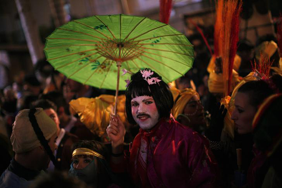 A reveller dressed up as a geisha takes part in New Year’s celebrations in Coin, near the southern Spanish town of Malaga. January 1, 2014.