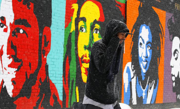 A pedestrian walks through a winter nor’easter snow storm in Lawrence, Massachusetts, USA: January 2, 2014.