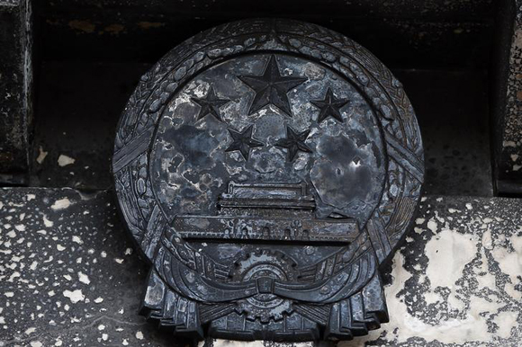 A charred national emblem of the People’s Republic of China is seen outside the Chinese consulate after an unidentified person set fire to the main gate in San Francisco, California, USA. January 2, 2014.