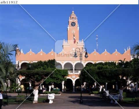 Food cart in front of Catedral de San Ildefonso in Merida Women from highland Chiapas en route to the open market in Merida. Colorful Colonial buildings line the side streets of Merida. Mexico, Yucatan State, Merida Credit: Album / akg-images / Rainer Hackenberg Palacio Canton, Museum of Anthropology and History, Paseo de Montejo, Merida, capital of Yucatan State, Mexico. Palacio Municipal and Ayuntamiento, Town Hall, Plaza Mayor, Zocalo, Merida, capital of Yucatan State, Mexico. Mexico.Yucatan.Mérida.Casa Montejo.Colonial siglo XVI.Ventanas de la fachada. Mexico.Yucatan.Mérida.Plaza Mayor y Palacio Municipal.Siglo XVI-XVIII-XIX. Mexico.Yucatan.Mérida.Museo de arte contemporaneo MACAY. Nineteenth Century Arcaded Residency in Mérida, Mexico Exterior Ornament on Spanish Colonial Mansion Horse Drawn Carriage