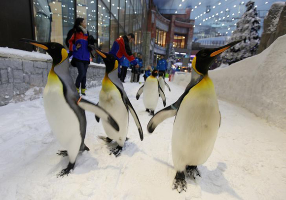 King Penguins walk in Ski Dubai at Mall of the Emirates during a media briefing, United Arab Emirates. Reuters Archive