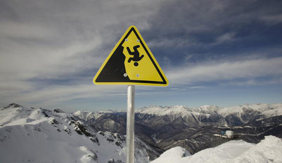 A warning sign is seen on top of the Rosa Khutor Alpine Resort in the western Caucasian mountains near Krasnaya Polyana some 40 km outside of the Black Sea city of Sochi, Russia. Reuters Archive.