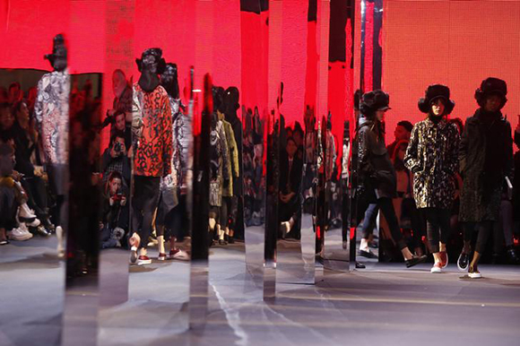 Models present creations by Italian designer Giambattista Valli from his Fall/Winter 2014-2015 women’s ready-to-wear collection for fashion house Moncler Gamme Rouge during Paris Fashion Week, France. March 5, 2014.
