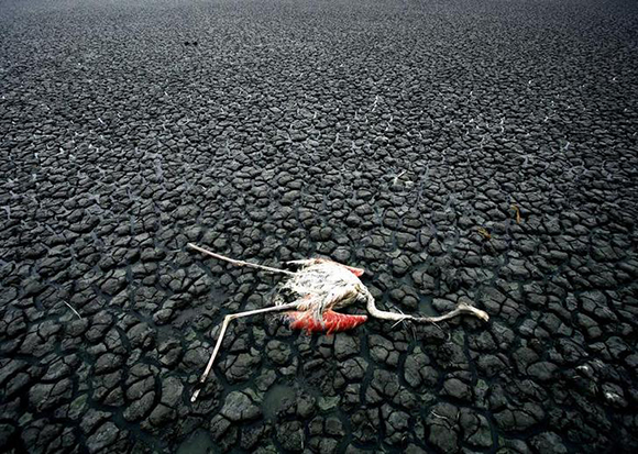 A dead flamingo lies on the dry lake Koronia some 550 km (344 miles) north of Athens, Greece. Reuters Archive.