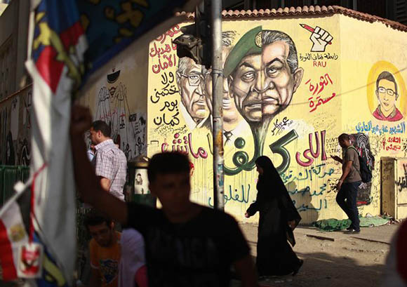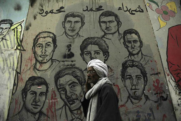 A man walks in front of a mural depicting youths who were killed during the Egyptian uprising near Tahrir Square in Cairo, Egypt. Reuters Archive.