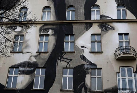 A picture shows murals of fashion model Teresa Oman by Melbourne-based street artist Rone at a residential building in Berlin, Germany . Reuters Archive.
