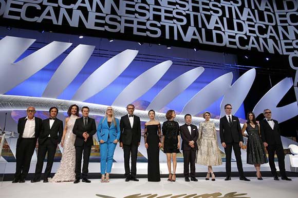 (L-R) British musician Michael Nyman, jury members actor and director Gael Garcia Bernal, actress Carole Bouquet, actor Willem Dafoe, Jury President Jane Campion, Master of Ceremony actor Lambert Wilson, jury members actress Jeon Do-yeon, director Sofia Coppola, director Jia Zhangke, actress Leila Hatami, director Nicolas Winding Refn and actress Chiara Mastroianni and director Alfonso Cuaron pose at the end of the opening ceremony of the 67th Cannes Film Festival in Cannes, France. May 14, 2014