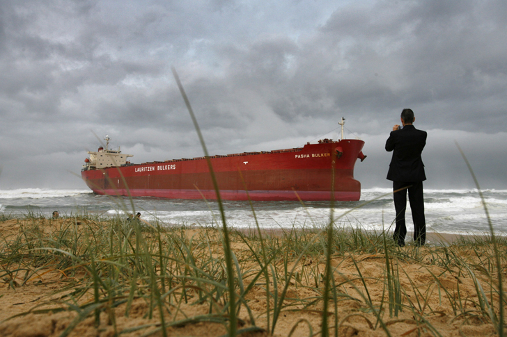 A man takes a photo of the 40,000 tonne coal ship Pasha Bulker as it sits about 100 metres (330 feet) from Nobbys Beach after running aground near the coal port of Newcastle on Australia’s east coast. Reuters Archive