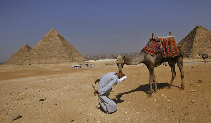 A man kisses a camel at the Pyramids Plateau in Giza, on the outskirts of Cairo, Egypt. Reuters Archive.