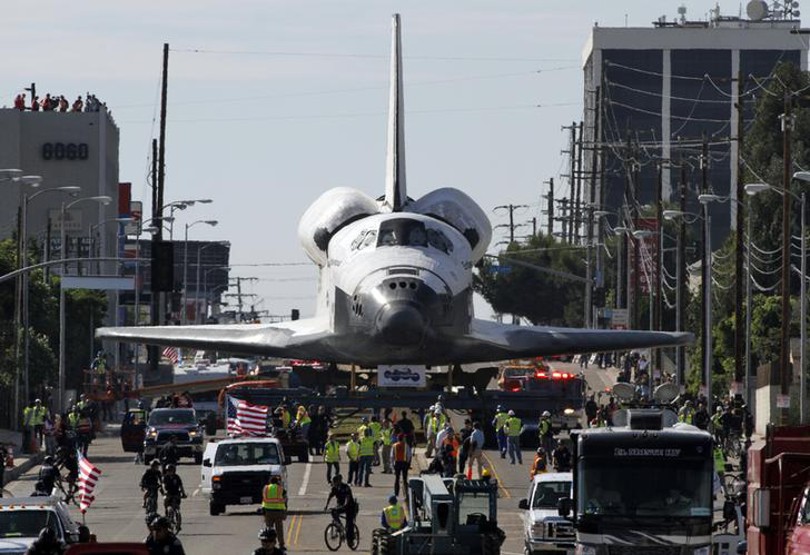 Space Shuttle Endeavour is transported on Manchester Avenue while being moved from Los Angeles International Airport to its retirement home at the California Science Center in Exposition Park in Los Angeles, California, USA. Reuters Archive
