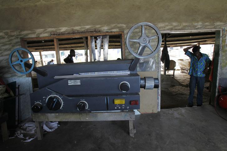 A coffin in the shape of a film projector is seen in the workshop of Kane Kwei in the Teshi area of Accra, Ghana. Reuters Archive.
