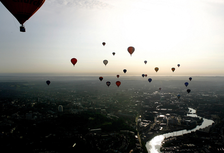 Balloons fly across the Bristol city centre during the 2006 Bristol International Balloon Fiesta in southwest England. Reuters Archive
