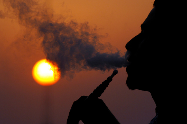 A Lebanese man smokes water pipe at sunset in Beirut, Lebanon. Reuters Archive.