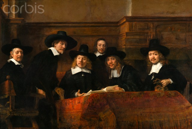 The Syndics: the Sampling Officials (Wardens) of the Amsterdam Drapers Guild by Rembrandt Harmensz van Rijn