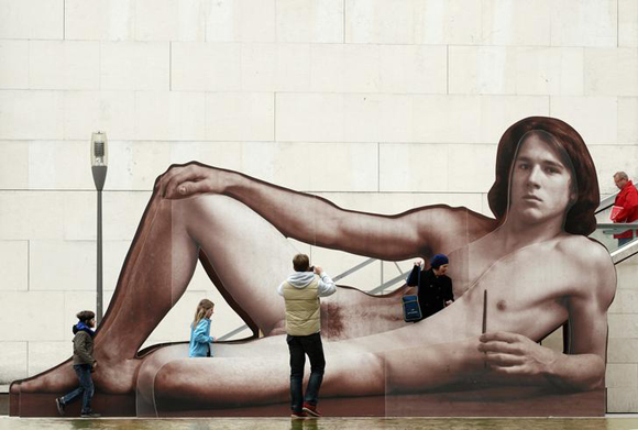 Passers-by photograph and examine an art installation promoting the exhibition «Naked Men» in front of the Leopold museum in Vienna, Austria. Reuters Archive