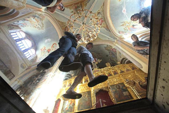 People look down at a crypt museum, set to open for the public at Saint George Orthodox Cathedral in Beirut, Lebanon. Reuters Archive