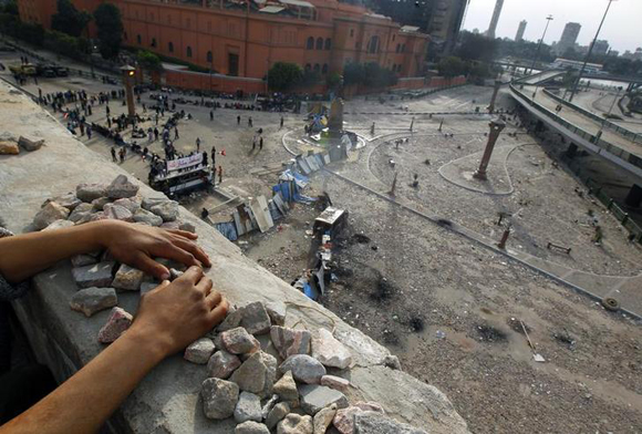 An anti-government protester mans an elevated defense position alongside the Egyptian Museum near Tahrir Square in Cairo, Egypt. Reuters Archive.